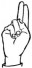 На ћирилици написано ШАЛЕ ВАСИЋ састоји се из 9 слова [?]. Исписано ћириличном једноручном азбуком за глувонеме: